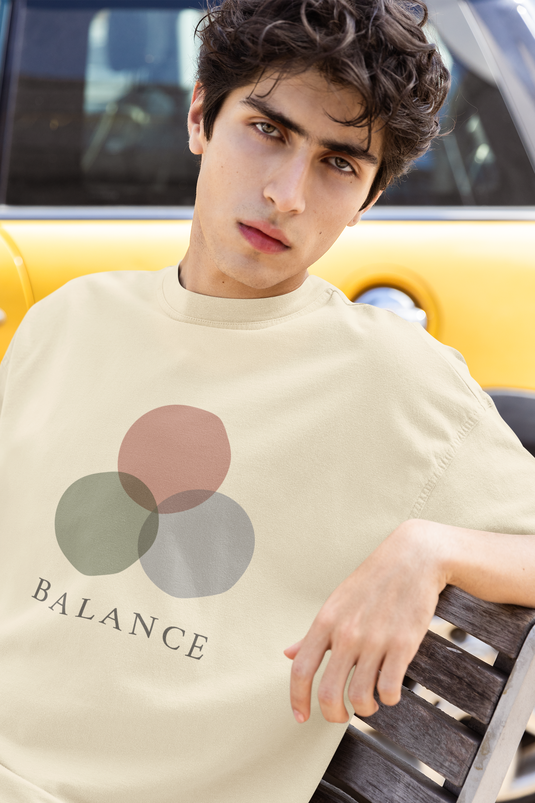 Where the forces of nature align. Elemental Balance draws together the tones of earth, fire, and stone, forming a visual statement of unity. Printed on a midweight, boxy-cut tee, its premium cotton fabric offers both structure and ease.