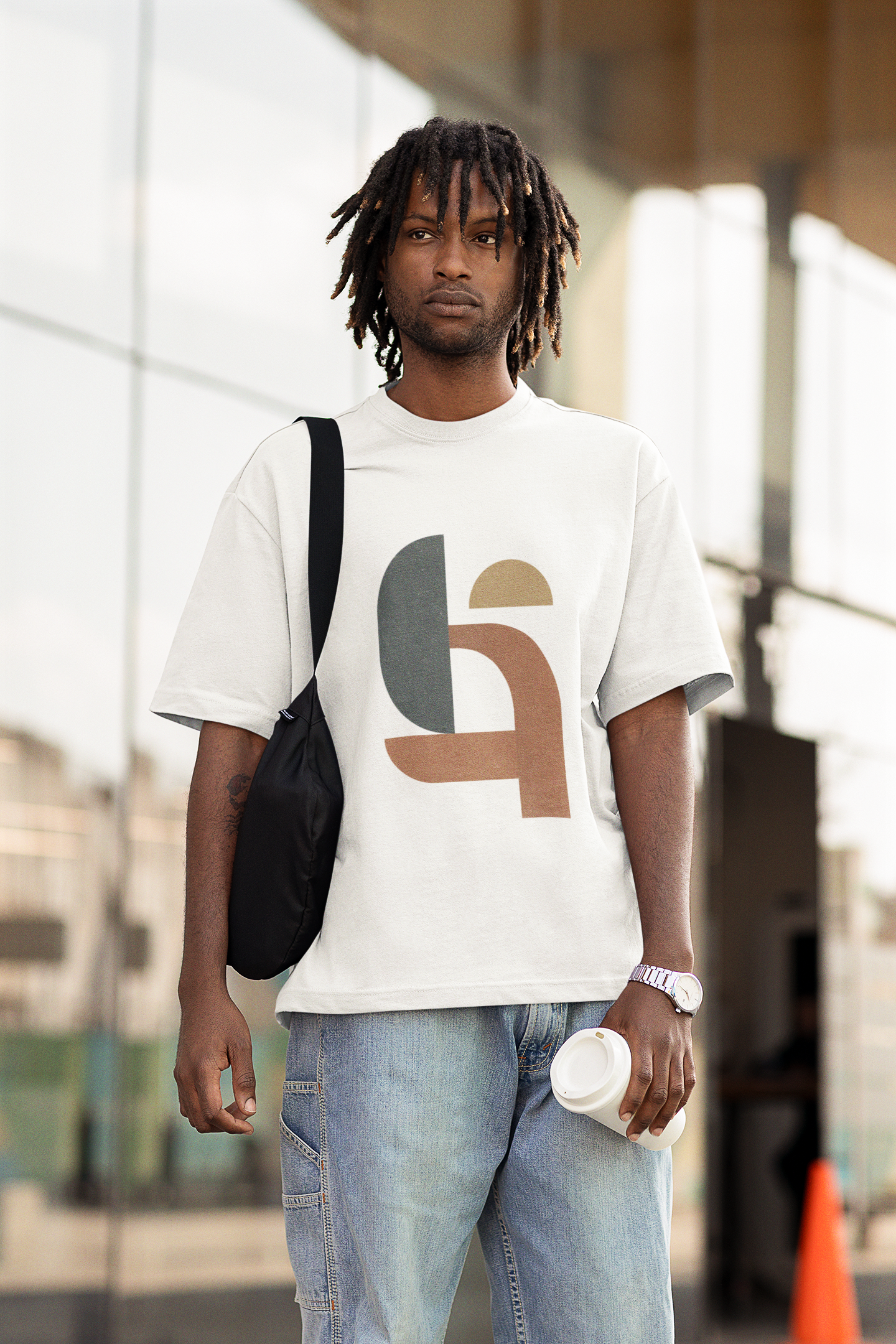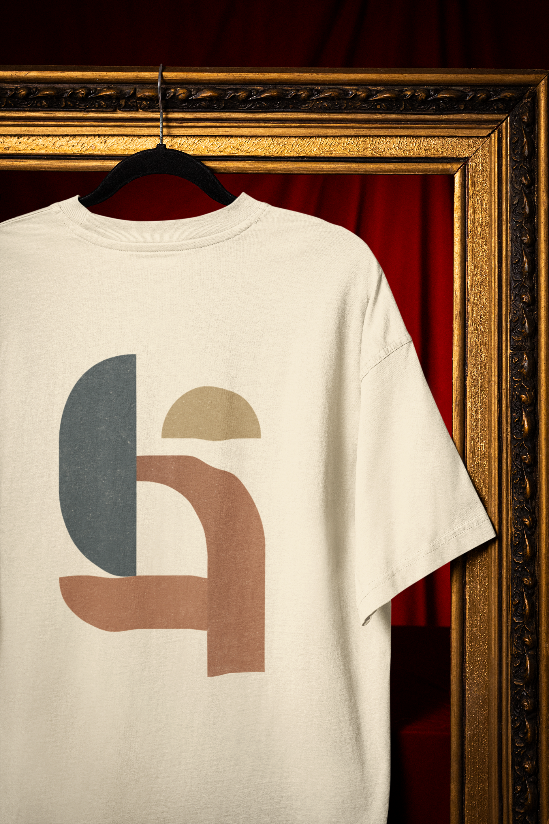 A meeting of forms and horizons. Harborform combines soft arcs, clean lines, and grounded colors to create a balanced architectural composition. Printed on a midweight, boxy-cut tee, it merges structure and calm.